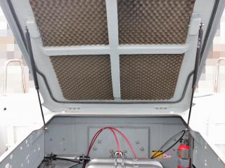 ◆エンジンルームハッチの上には脱着式の折り畳みシートが2脚備わっています。