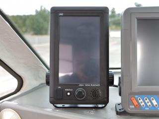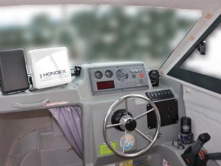 ◆コクピットにはHONDEXの8.4インチGPS魚探「PS-800」とJRC7インチレーダー指示機、コンパスが備わっています。取材当日は動作確認をしていませんがオーナー様によると計器類も特に問題ないとの事でした。