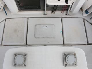 ◆キャビン・デッキ全体を見ても、航行や釣りに大きく支障が出るような割れや損傷などは無いように見受けられました。デッキも硬く、ノンスリップの異常摩耗なども無いように見受けられました。