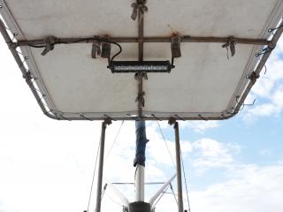 ◆オーニング・フレームはしっかりしていました。テント生地は若干劣化しているようでしたが、大きな破れなどはありませんでした。スパンカーは広げて確認はしておりません。