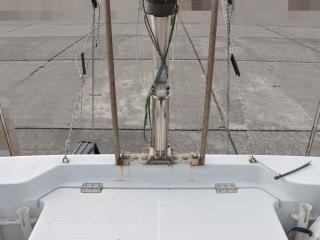 ◆フロントデッキも船齢相応の経年劣化によるくすみや汚れ、などはあるものの、ブアつきやノンスリップの異常摩耗したような個所は見受けれませんでした。また、バウスプリット部も特に問題無いように見受けられました。