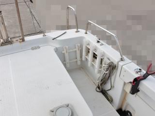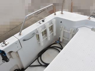 ◆デッキ面、サブタも硬く良好です。また、トランサムには両舷にはステップも備わっており、右舷側にはラダーもついていますので、万が一の落水時にも水面からのアクセスが容易です。