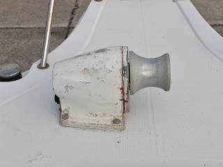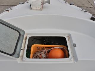 ◆バウには電動アンカーリールが装備されており、バウスプリット先端には三方ローラーも付いています。なお、バウレールも良好です。