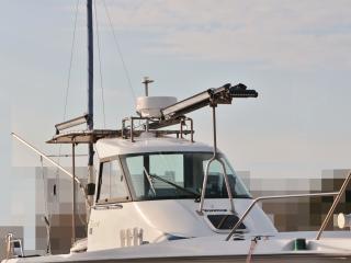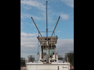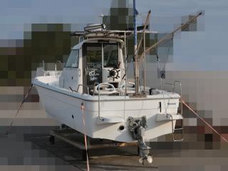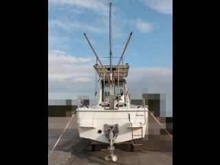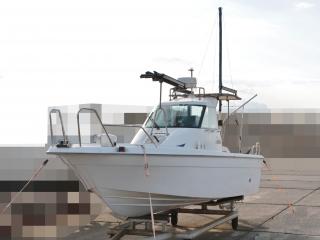 ◆艇は平成14年4月進水のヤンマーFX24BZⅡ-IS(24フィート)です。いわゆるウォークアラウンド艇で、リアドア付きなので冬季も快適な釣行が楽しめそうです。また、バウ及びアフトデッキにも純正レールが付いており、トランサムには両舷にステップが装備され、右舷側にはラダーも付いていますので、海上からのアクセスも容易です。