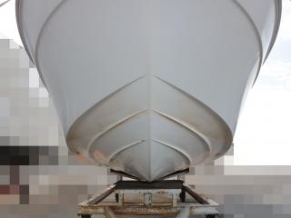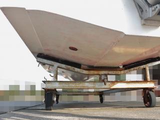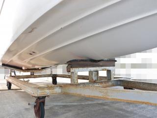 ◆この艇はかつて船底塗装をされていたようですが、現在は塗料を剥がされて陸上保管されています。(船底をよく見ると船底塗装をした痕跡が見て取れます)ぱっと見た感じでは船底にも航行に影響があるような傷などは無いように見受けられました。