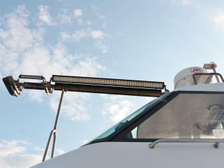 ◆LED集魚灯がフロントデッキ、アフトデッキの両舷に備わっており、デッキライトも装備されているのでイカメタルなどの釣りも楽しめそうですね。