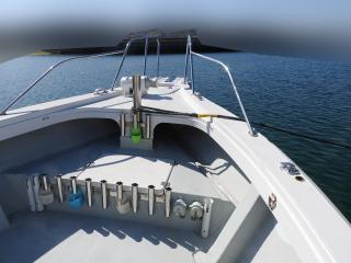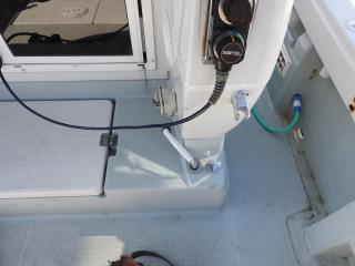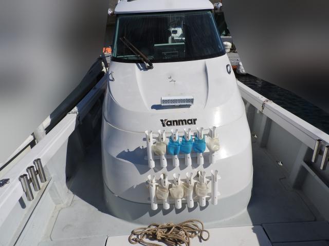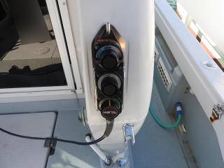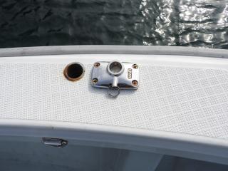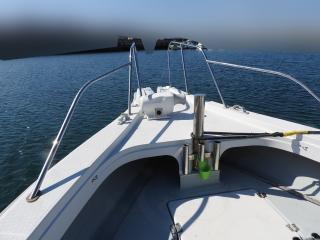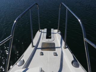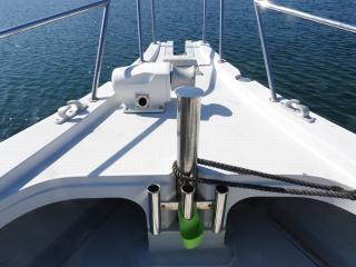 ◆バウデッキの前にロッドホルダー、コンセント2個があります、キャビン前にロッドホルダーがあります。