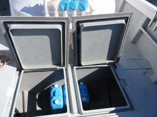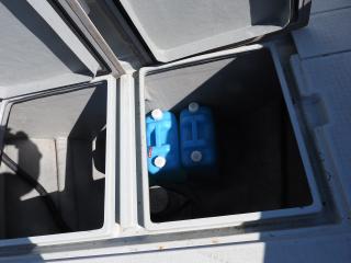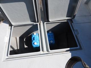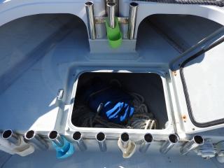 ◆キャビン前フォアデッキには2間物入が有ります、栓を付ければイケスになりそうです。