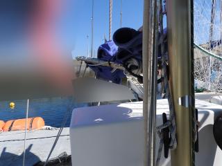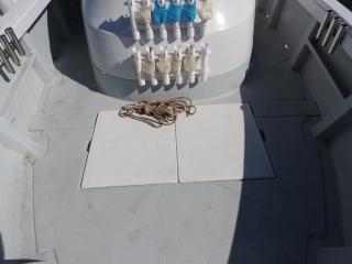 ◆デッキは固く良好です、バウデッキにはロープなどの物入が有ります。