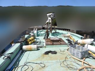 ◆サイドスラスターは前後に2台設備しています、キャブスタンも3台あります、1人で船をイケスに固定できます、給餌も1人でできるので重宝です。