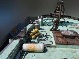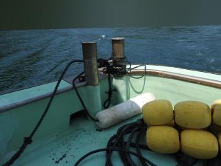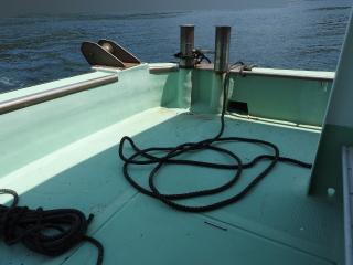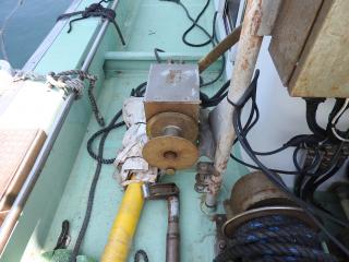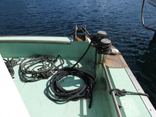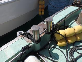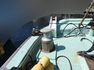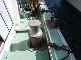 ◆キャブスタンは前後と横にあります、横のキャブスタンで金具を筏にかけて船を寄せます。