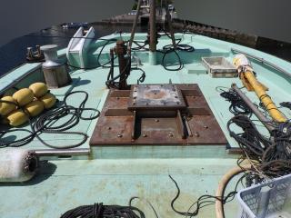 ◆バウデッキにクレーンの台座があります、ステンレス製です、下には支柱もあります、丈夫なものです。