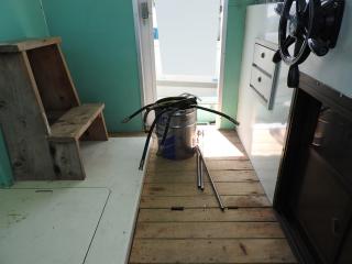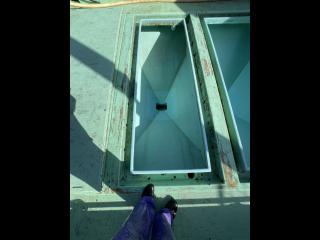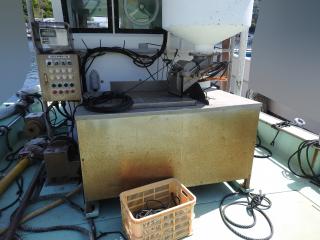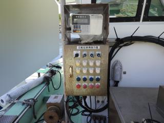 ◆自動で給餌できる設備をしています、EPをダンブルに入れておきます、自動でキャビン前のステンレスのタンクに運ばれます、そこから自動計量でイケスに給餌します。