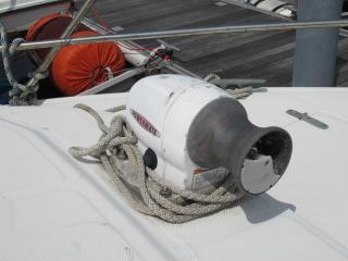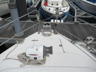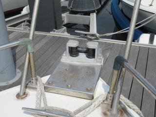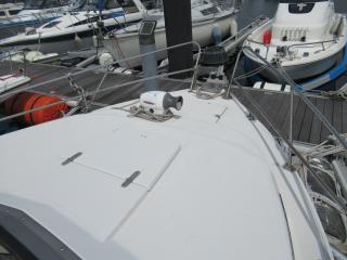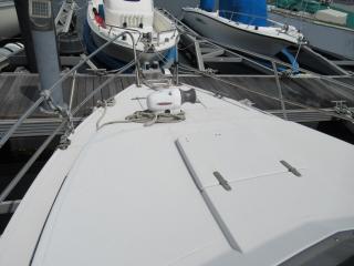 ○バウデッキにはアンカーウインチ、 バウデッキ使用時につかまれるステンレスのステイがあります。
