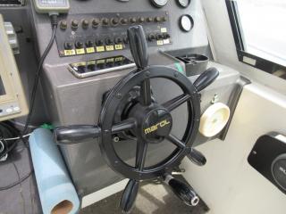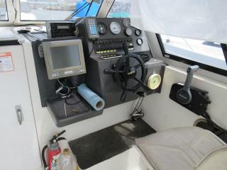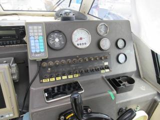 写真のように操船席周りに航海計器は集約されていますので、 操船中の操作や確認などもとても見やすい形になっております。