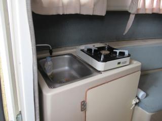 〇操船席奥に進むと左舷側にはギャレーもあります。