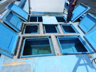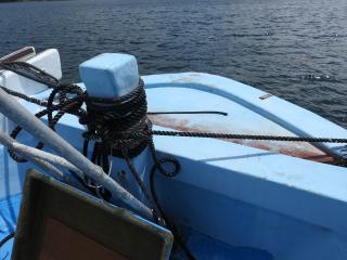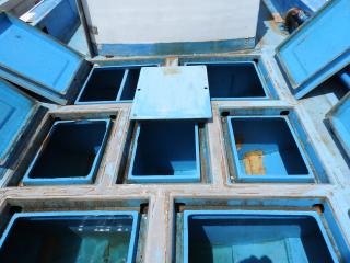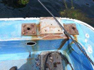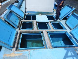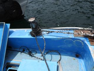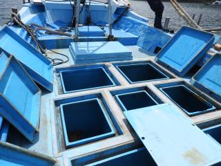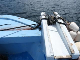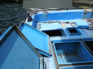 ◆フロントデッキには7間のダンブルがあります、栓は開けていません、イリコを入れて運搬されていました、艫にもダンブルがあります。
