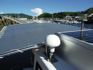 アンカーウインチ、LEDデッキライト、アクセサリー用バッテリー、ソーラー充電器、オーニングなど装備されています。