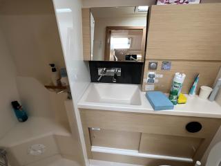 天井も高く、オーナーズ キャビンには独立したシャワー付きの快適なバスルームと、スタイリッシュなラウンジ チェアを備えた広々としたサロンがあります。