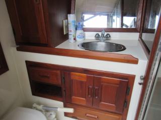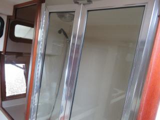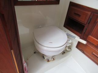 前方に進むと右舷側にトイレがあります。シャワーも装備されています。