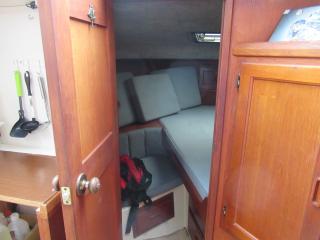 その前にはバウキャビンになっています。大人2人がゆっくりと出来るスペースがあります。