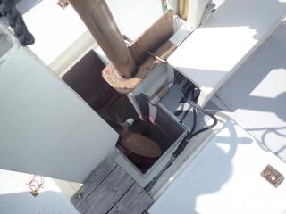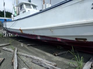 〇採介藻漁船と使用されていましたので、船底後部には、潜水用ホースがプロペラの巻き込み防止として網状のガードが取り付けられています。