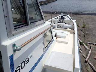 ○船首/船尾側と全体的デッキは広く、ブリッジ横の通路も左舷側が確保されて、舷の高さは低めですので、やや穏やかな海域で使用される方には、使い勝手が良さそうです。