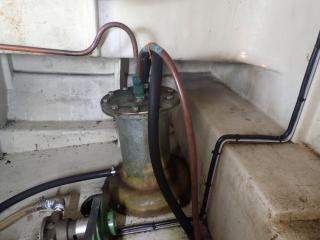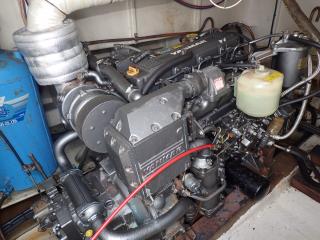 搭載されていますエンジンは、ヤンマーディーゼル 型式:4LH-HK 漁船法 45馬力の1基です。また、潜水用の圧縮用ポンプが設置されています。