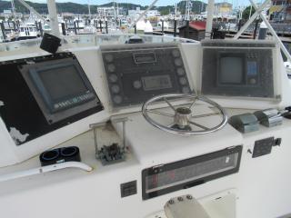 ダー(FURUNO)、サーチライト、水温計、マリンVHF(FURUNO FM2678)等の装備がされています。他の装備としてはエンクロージャー等があります。作動確認は行っておりませんが、現状で