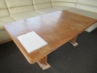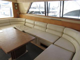 まず入口を入るとまずメインキャビンになります。左舷側には大きなソファとテーブルがあります。