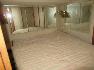 大きめのベッドがあります。また、ゲストルームの反対側にはシャワー付きのトイレがあります。