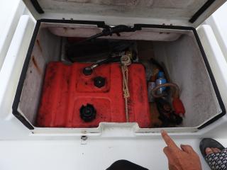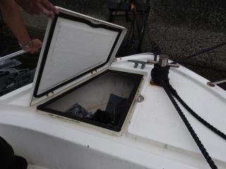 ◆バウピットの横に物入が有ります、錨、ロープなどを収納します。