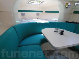 この艇の特徴の一つである船内は写真のようにとても広く、ご家族や海の仲間と楽しく過ごせる空間が確保されています。