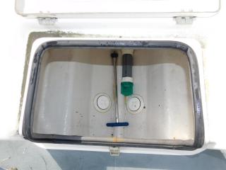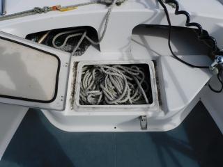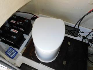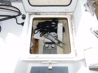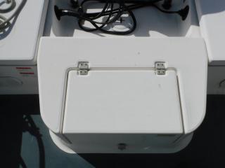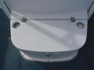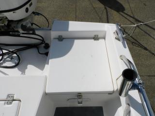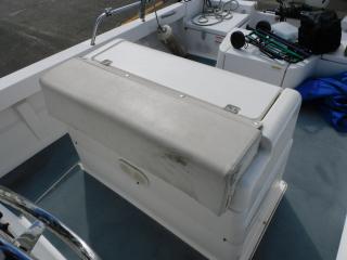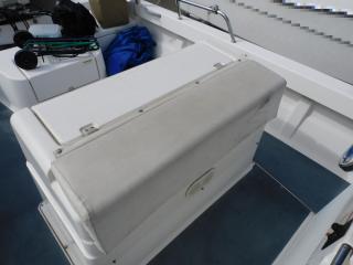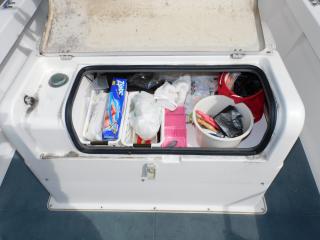 センターコンソール内部は左舷側にドアがある収納庫で、収納庫内にポータブルトイレ(未使用)を装備していますので、ファミリーフィッシングにも安心です。