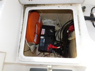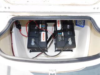 エレキモーターは平成30年8月にMINN KOTA i-Pilot RIPTIDE TERROVA 80/IP(リモコン付き)を搭載しており、エレキモーター用のバッテリーとしてこちらもディープサイクル DCM-M31 2個が、ソーラーパネルによるバッテリーチャージャーと共に装備、充電しております。