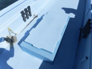 船体後方のブルワークも高さ25cm長さ2mほど嵩上げしてあり移動時も安全で飛沫も浴びません。