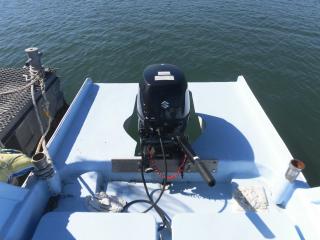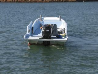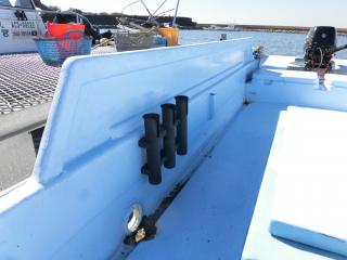 船尾は船外機を囲うように出ドモ構造に改造してありますので船外機のキズ防止やプロペラにトラブルがあった時には活躍します。