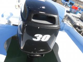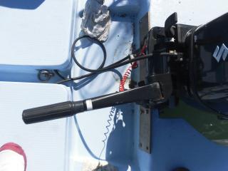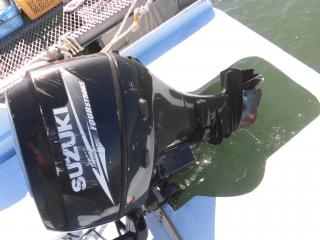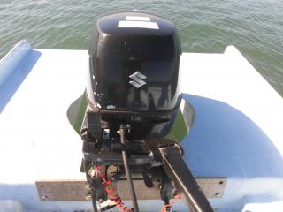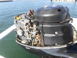 エンジンはスズキ製4スト30馬力(ティラーハンドル仕様)搭載で低燃費です。MAXスピードは約17ノット程ですが燃費は良好です。