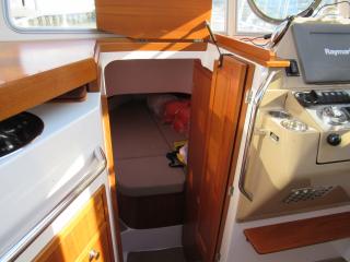 後方階段を下りるとオーナーズルームがあり、ゆったりとしたベッドの装備があります。また、手動式マリントイレもあります。