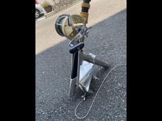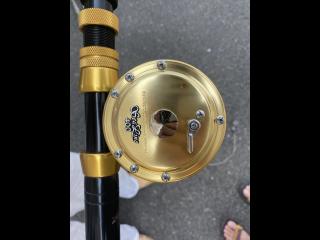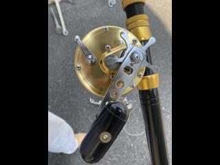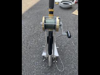 アルファタックルのロッドとDAIWAのリールと、このタックル専用に作ったステンレス製の竿受けのセットとなります!