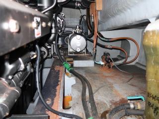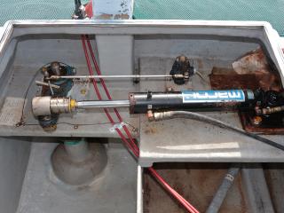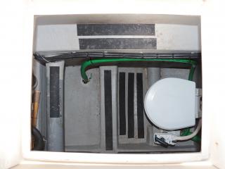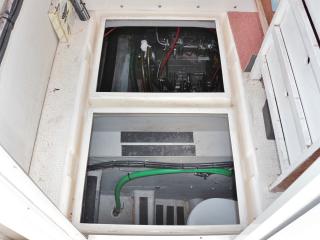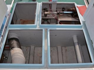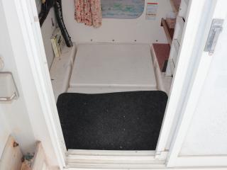 ◆キャプテンシート左横にサブタが前後に並んでいますが前側を開けると機械場にもアクセス可能です。後ろ側のサブタを開けるとマリントイレ(手動式)が現れます。