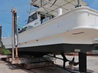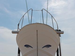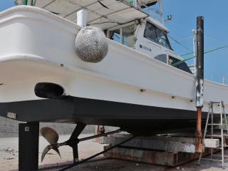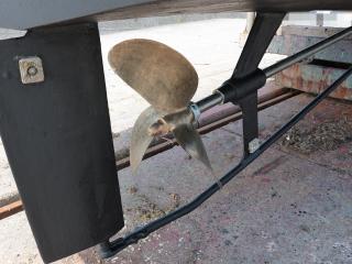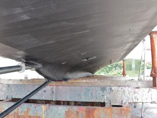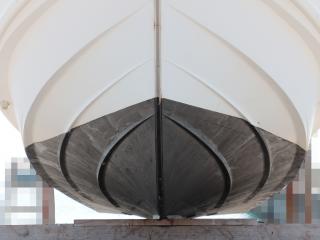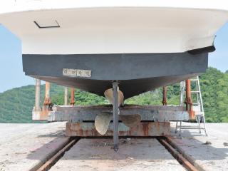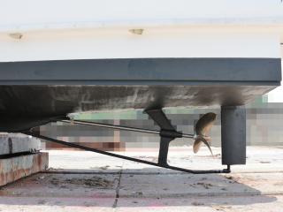 ◆取材時は係留状態でしたので船底の確認はできておりませんが、以前にドッグされた際の写真をオーナー様にご提供いただいて写真No,11~12に掲載しております。なお、シャフトはブラケット保持です。また、シャフトはKA3でΦ60mmです。