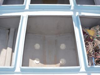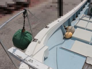 ◆船体はFB風のブリッジに屋根と風防が付いている様な構造ですが、全体的にはや大きな改造やクセのある艤装も無く、ノーマル然としています。また、年相応の日焼けなどの経年劣化は見受けられますが、取材時の船齢約23歳という事と係留保管という事を鑑みれば大きな傷も無く相対的には綺麗な個体だと思われます。なお、航行に影響があるような損傷や、たちまち補修が必要な割れなどは無いように見受けられました。