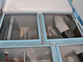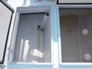 ◆ブリッジ前にイケス2間があり、ブリッジに近いほうのイケスの両脇は氷間になっています。