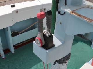 ◆ジャンボ竿の付け根にエンジンリモコンと舵リモコンがあり、ここでも操船可能です。