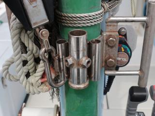 ◆トモにはジャンボ竿が装備されています。(その横にある小さな竿と新日海の釣り機は取り外されます。)