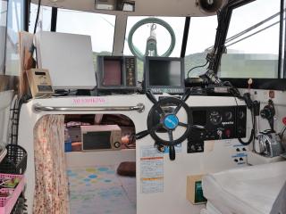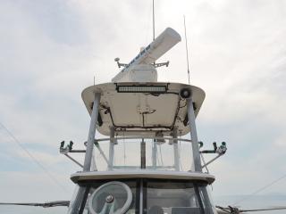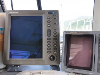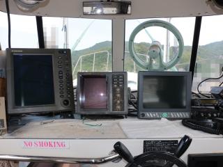 ◆操船部には、古野製のレーダー、魚探とホンデックス製のプロッター、アマチュア無線機などが装備されています。