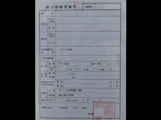 動力漁船登録票・JCI検査証及び検査手帳・コーションプレート