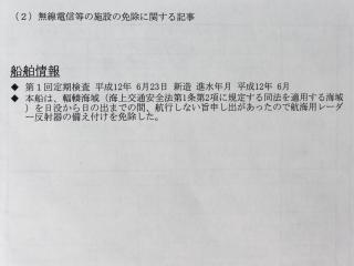 ※この船を現地から航行区域外の港に航行するには「新規登録」や「臨時航行区域変更」などの手続きが必要になると思われます。こちらも有償にはなりますが当方で申請や検査の立会いなどを承りますので必要でございましたらお問い合わせ下さい。