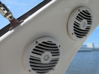 アフトデッキはとても広い空間が確保されていて、レザーシートの装備があります。船にお招きしたゲストの方々にゆっくりと楽しんで頂けるデッキレイアウトになっています。